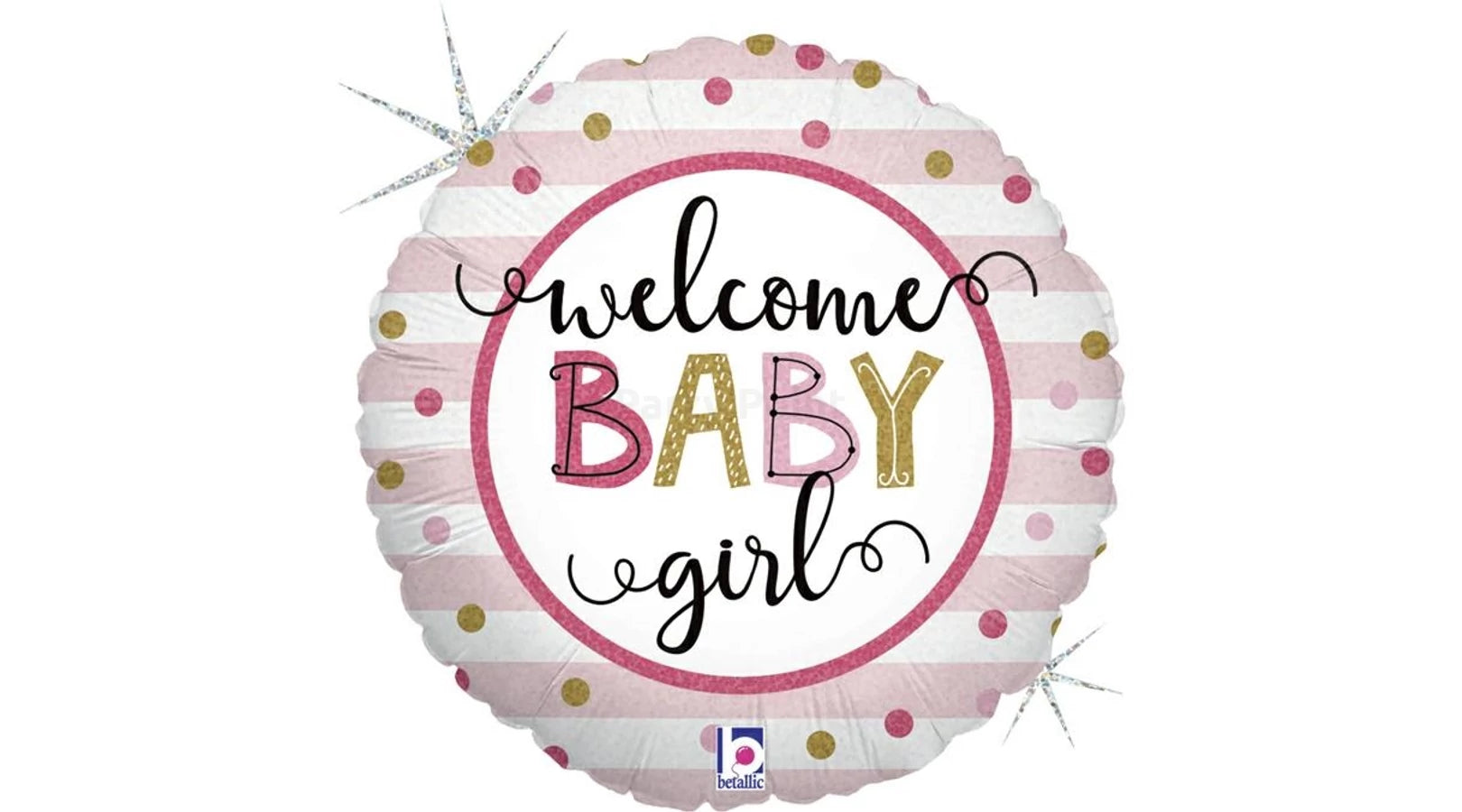 45 cm-es Welcome Baby girl csíkos fólia lufi