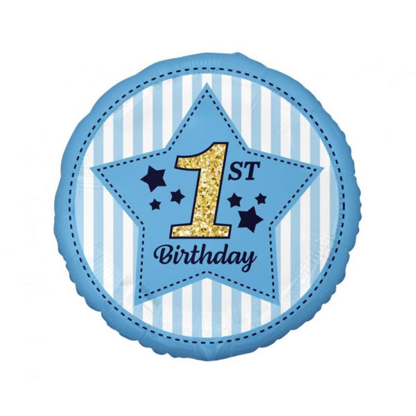 Kék 1-es csillagos kerek fólia lufi