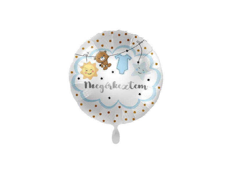 Megérkeztem kék fólia lufi